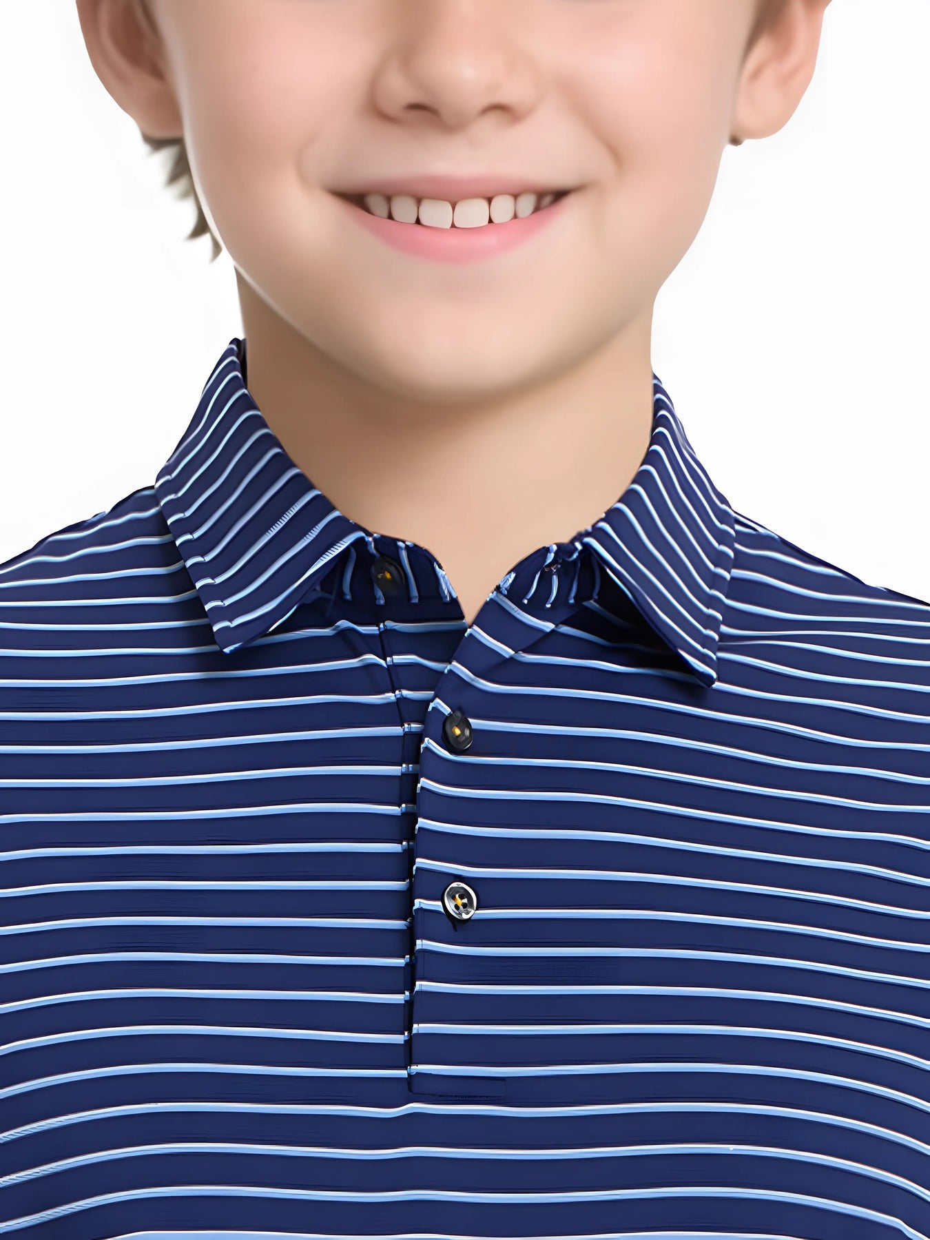 Discover the versatility of our Youth Performance Golf Polos. Style meets functionality in these boys' golf shirts featuring a no-roll collar, tag-free design, and durable stitching. Easy to care for, they maintain softness and shape wash after wash. Stay comfortable all day with quick-dry, moisture-wicking, stretch, and breathable fabric.