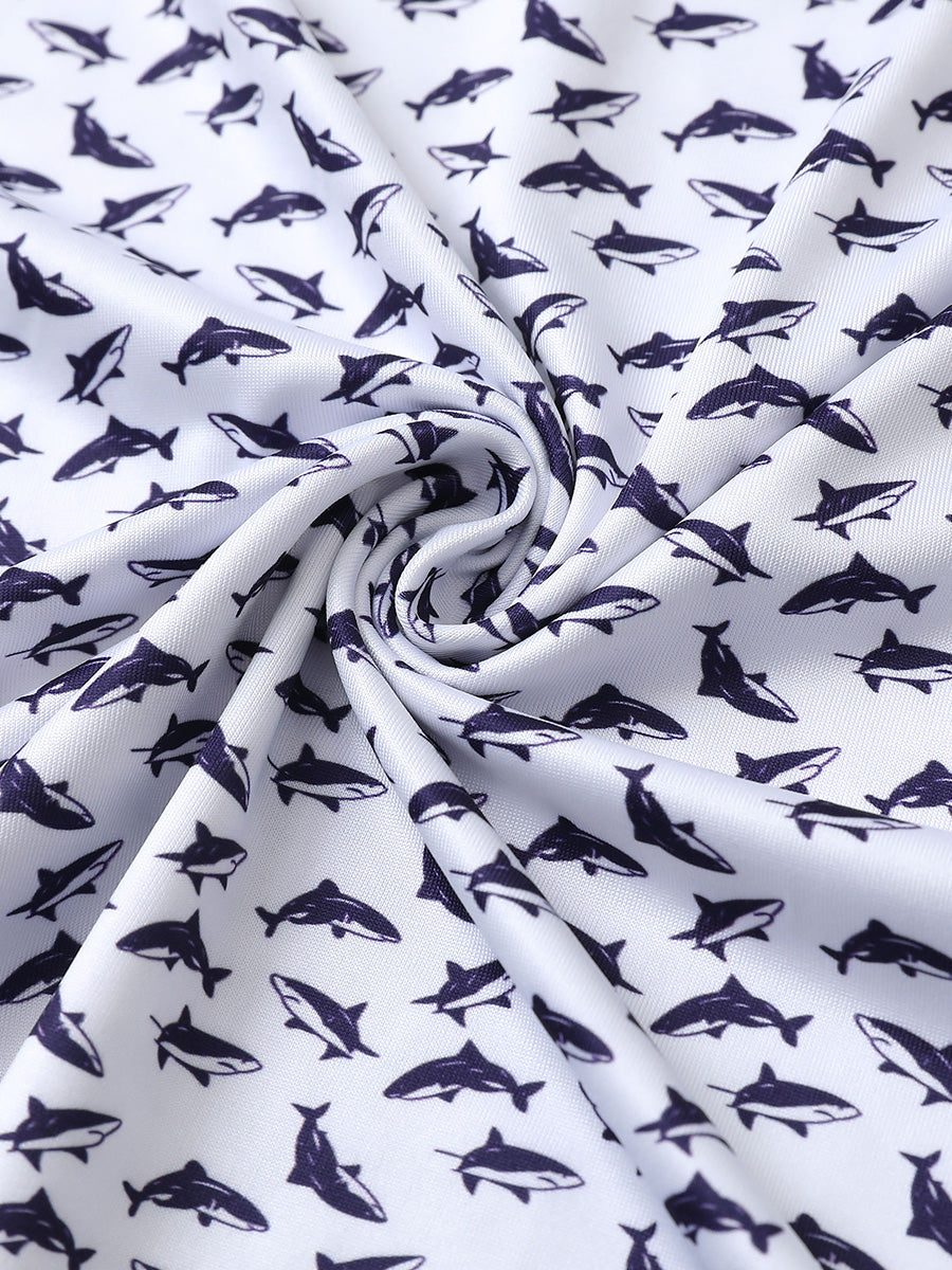 Get your little golfer ready for adventures with our 'Performance Print Boys Golf Polo'. Crafted from top-notch fabric that wicks moisture, stays light, and shields with UPF 50+. Let him swing freely with the split hem and stretchy fabric. Watch him rock the course in fun animal and plant prints that never fade, making him the cutest golfer around!