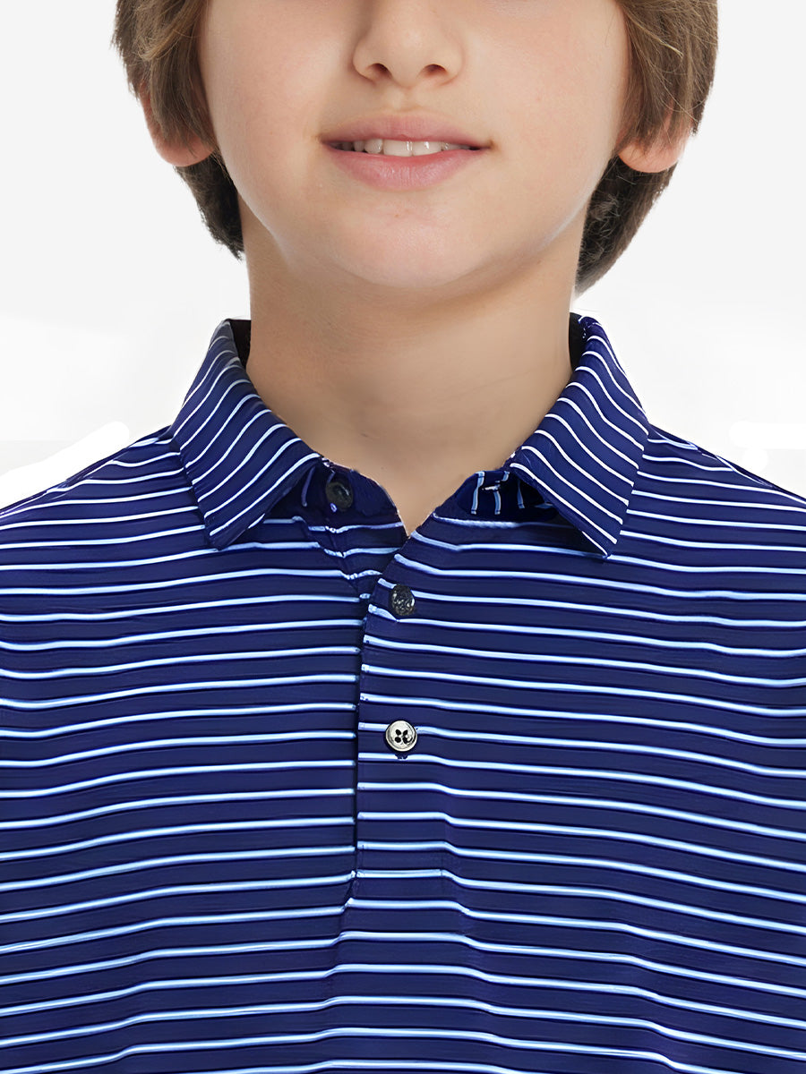 Discover the versatility of our Youth Performance Golf Polos. Style meets functionality in these boys' golf shirts featuring a no-roll collar, tag-free design, and durable stitching. Easy to care for, they maintain softness and shape wash after wash. Stay comfortable all day with quick-dry, moisture-wicking, stretch, and breathable fabric.