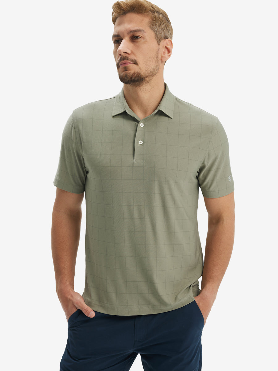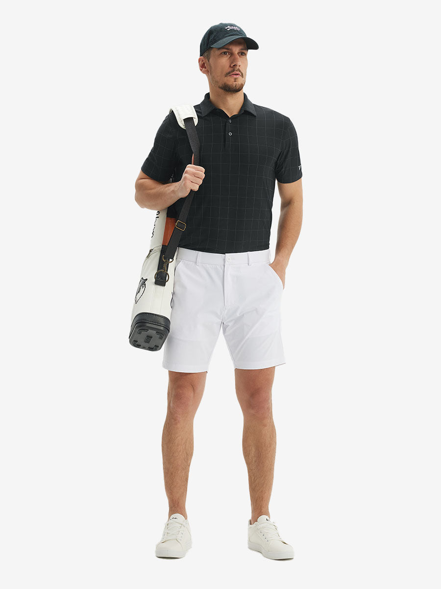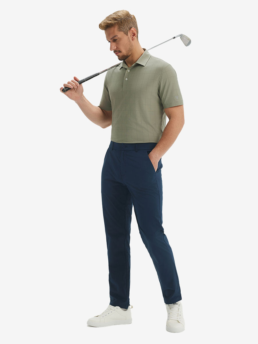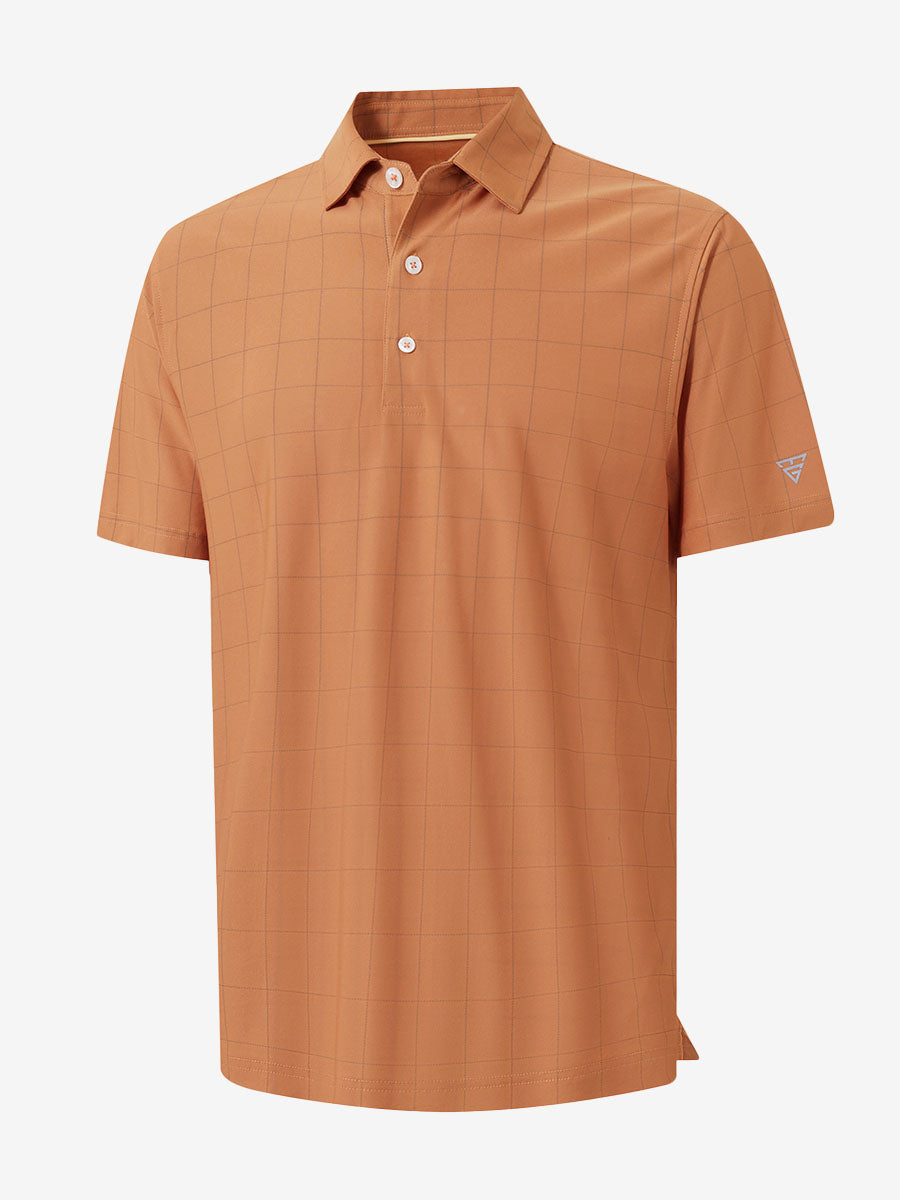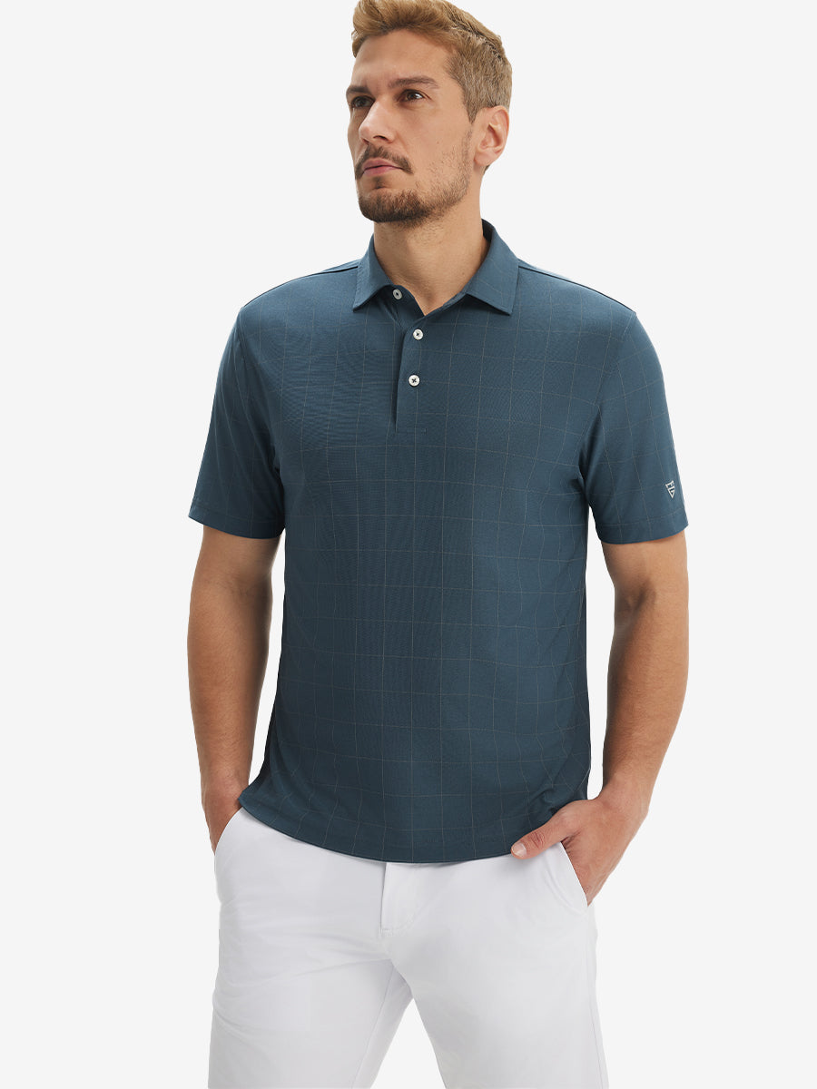Elevate your game in the Performance Reflective Checked Collar Golf Shirt! Crafted from lightweight, quick-dry polyester with moisture-wicking tech, UPF 50+ protection, and 4-way stretch for total freedom of movement. A structured, non-curling collar, 3-button placket, and side split hem deliver classic polish, while the reflective checked pattern adds modern flair. Soft, skin-friendly, and durably stitched—perfect for the course, office, or weekend wear!