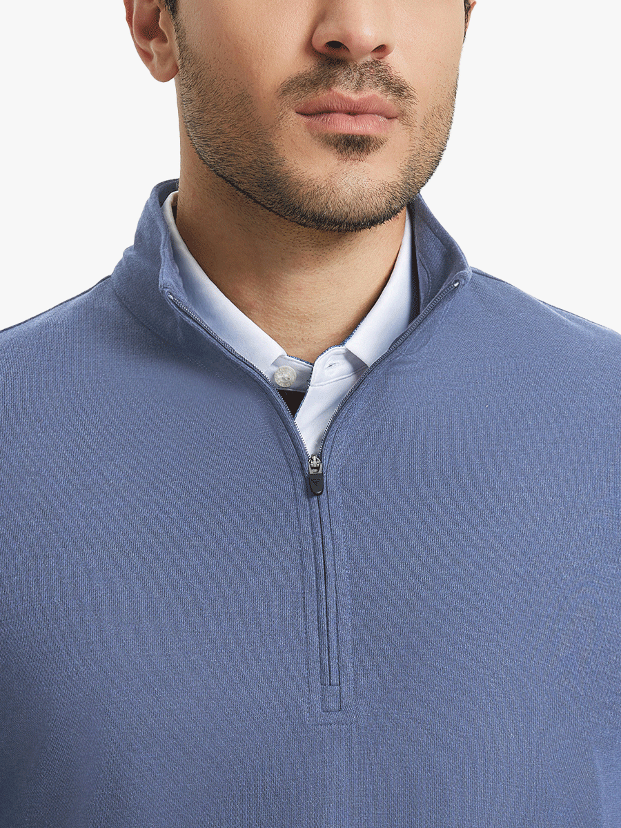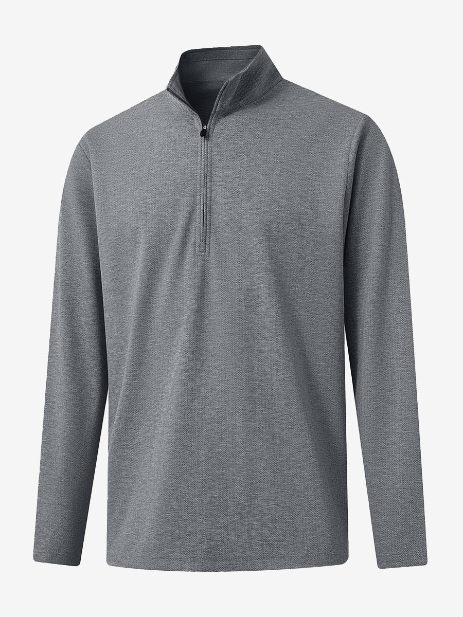 Experimenta la máxima comodidad y estilo con nuestro Sudadera Jacquard Premium con Cremallera de Cuarto. Confeccionada con tela de espiga de alto rendimiento, ofrece tecnología dry fit y protección UPF 50+. Esta sudadera para hombre es ideal para mantenerse abrigado en climas fríos y perfecta para usar en capas en otoño e invierno. El tejido elaborado garantiza resistencia al desgaste y durabilidad, a la vez que mantiene una ligera elasticidad para facilitar el movimiento. Con costuras meticulosas y detalles exquisitos, esta sudadera es una mezcla perfecta de calidad y funcionalidad.