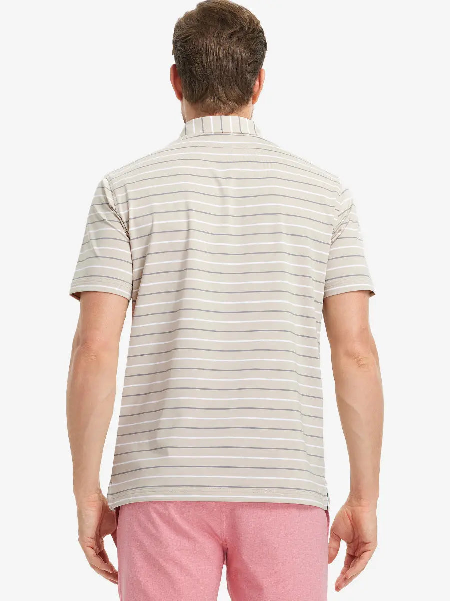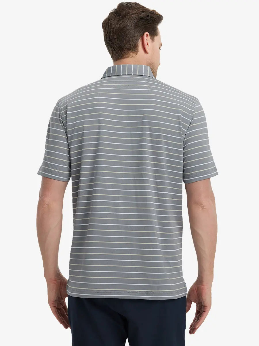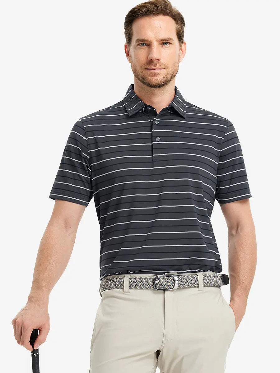 Nuestra camisa de golf para hombre presenta rayas teñidas en hilo y está hecha de material de poliéster-spandex de alta gama, proporcionando suavidad y transpirabilidad. Elimina eficazmente la humedad para mantenerte fresco y seco. Con tejido elástico en 4 direcciones, este polo garantiza una total libertad de movimiento para cualquier golfista. Ideal para el campo o para uso casual.
