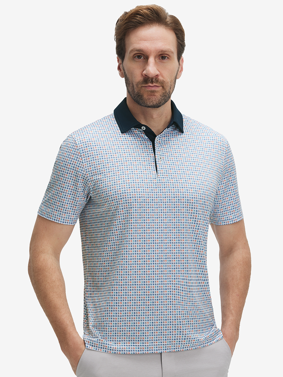 Lightweight Stretch Upgraded Print Golf Polo Shirts for men blend style and performance. Featuring a bold color-blocked collar, this short-sleeve polo stands out on and off the course. Made with moisture-wicking, UPF50+ fabric that’s ultra-soft, breathable, and feather-light—designed for all-day comfort whether you're swinging clubs or relaxing in style.
