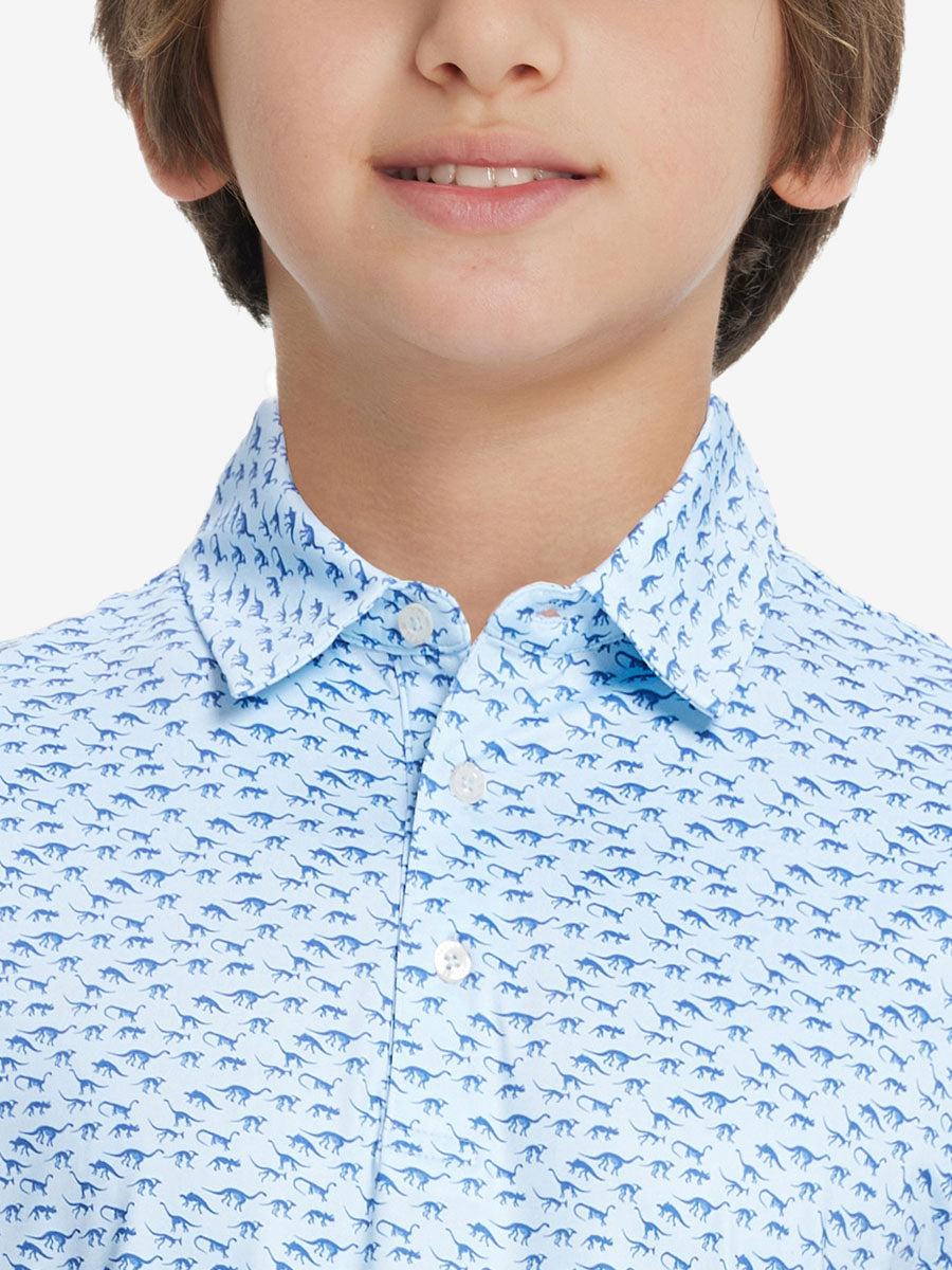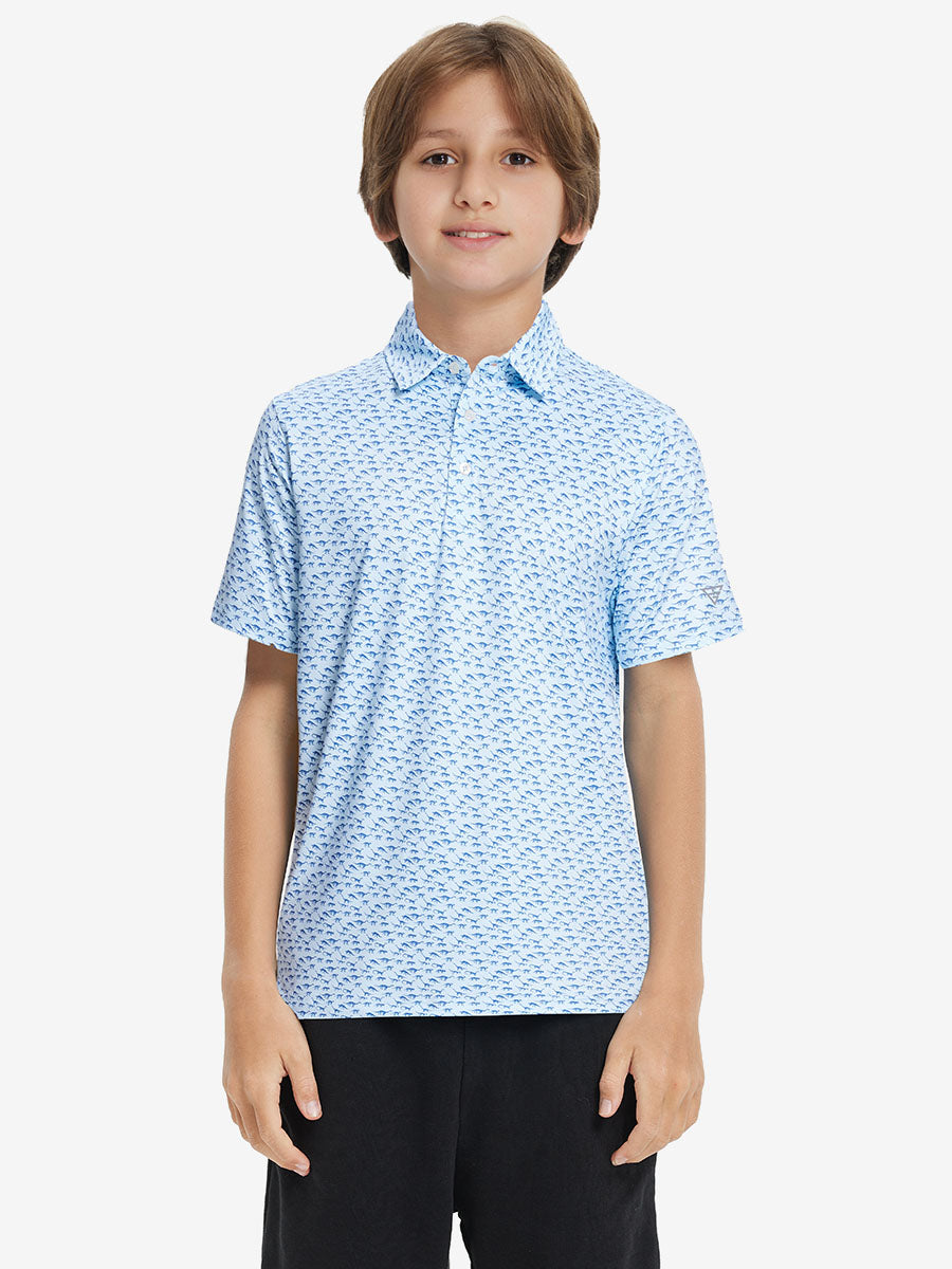 Get your little golfer ready for adventures with our 'Stylish Print Boys Polo Shirts'. Crafted from top-notch fabric that wicks moisture, stays light, and shields with UPF 50+. Let him swing freely with the split hem and stretchy fabric. Watch him rock the course in fun animal and plant prints that never fade, making him the cutest golfer around!