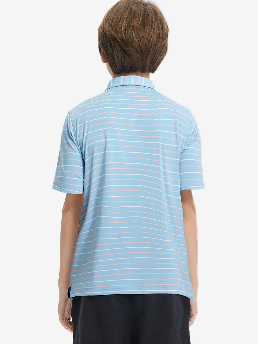 Introducing our Trendy Boys Stripe Polo Shirts! Made from high-end polyester spandex, these soft, skin-friendly, and lightweight shirts keep your little ones cool and dry in hot weather. With 4-way stretch fabric and premium dyeing, this vibrant youth golf shirt remains durable wash after wash, perfect for active kids who love to play.