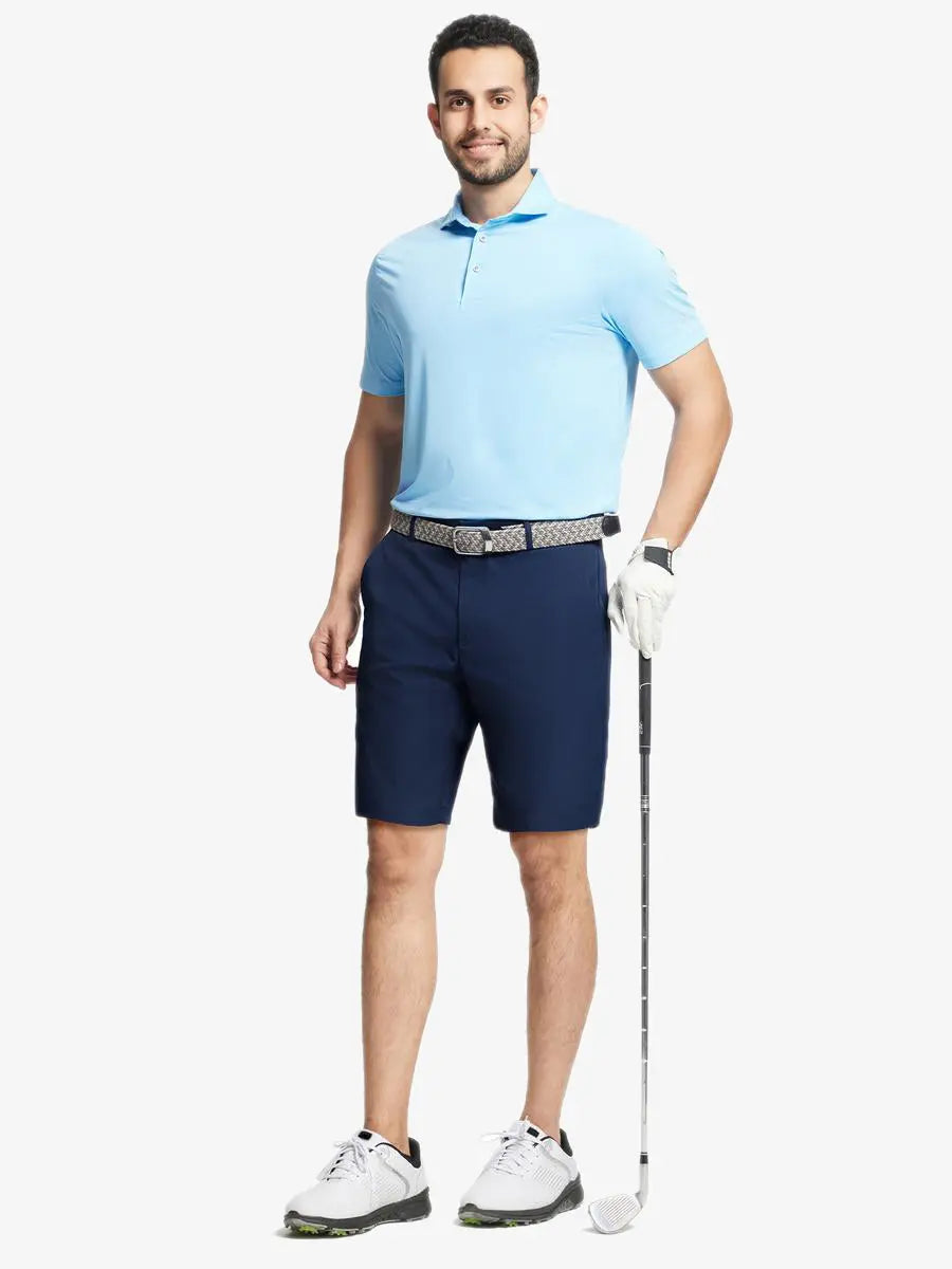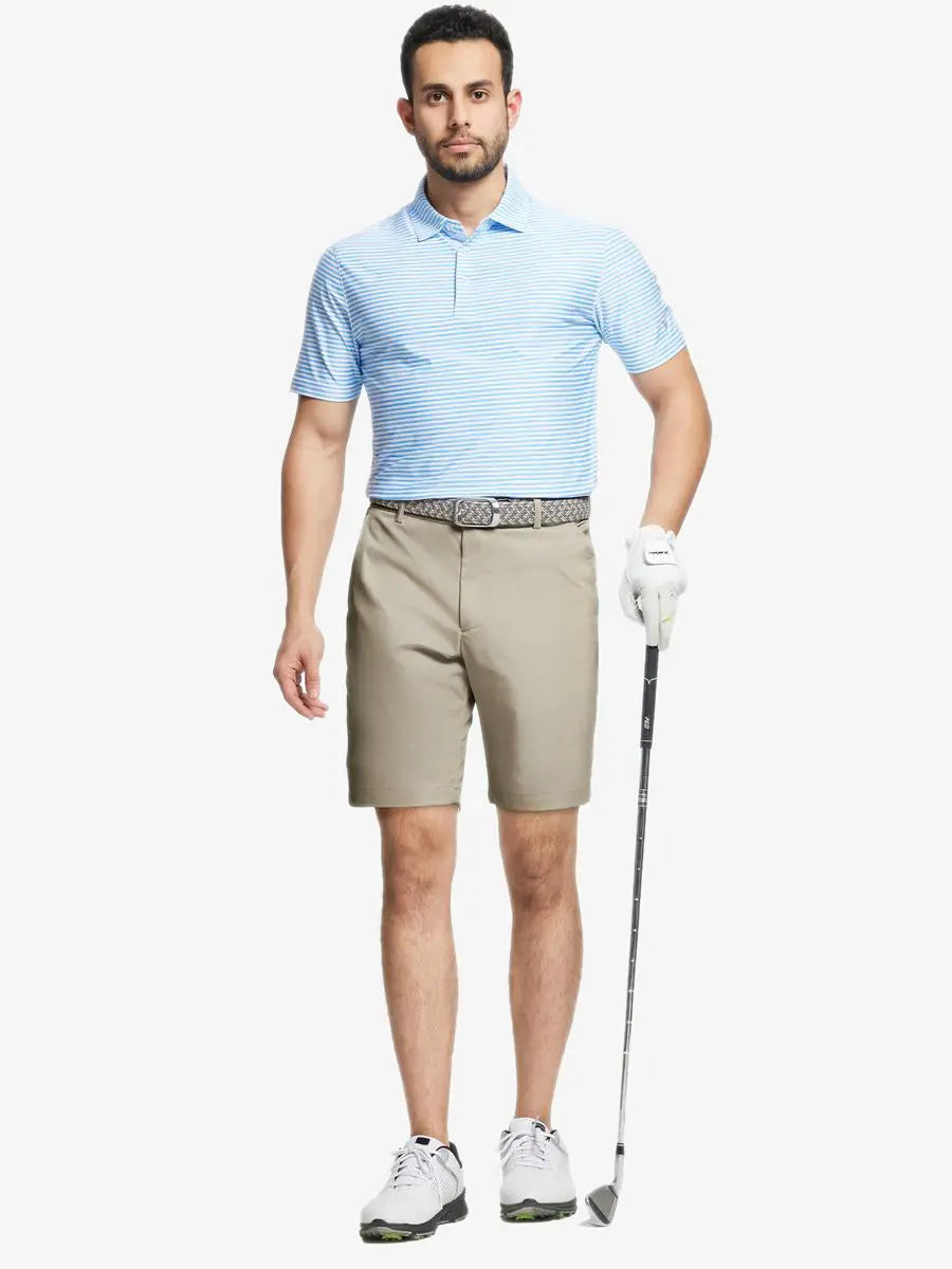 Elevate your game with our Water Resistant Golf Shorts for men. Crafted from premium polyester, these lightweight shorts offer moisture-wicking properties, easy care, and UPF30+ sun protection. Designed for comfort and flexibility, they keep you cool and allow a full range of motion. The secure closure with buttons and a zipper fly ensures a perfect fit, perfect for a flawless golfing experience.